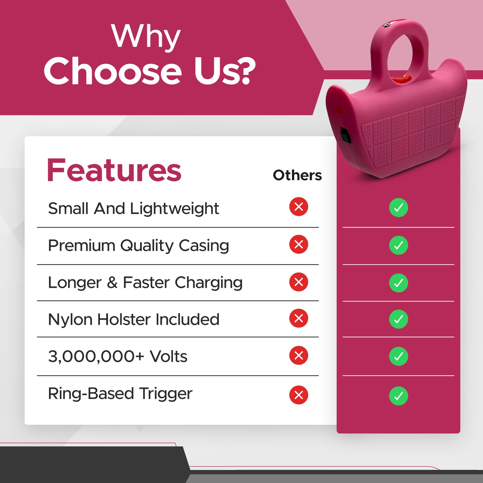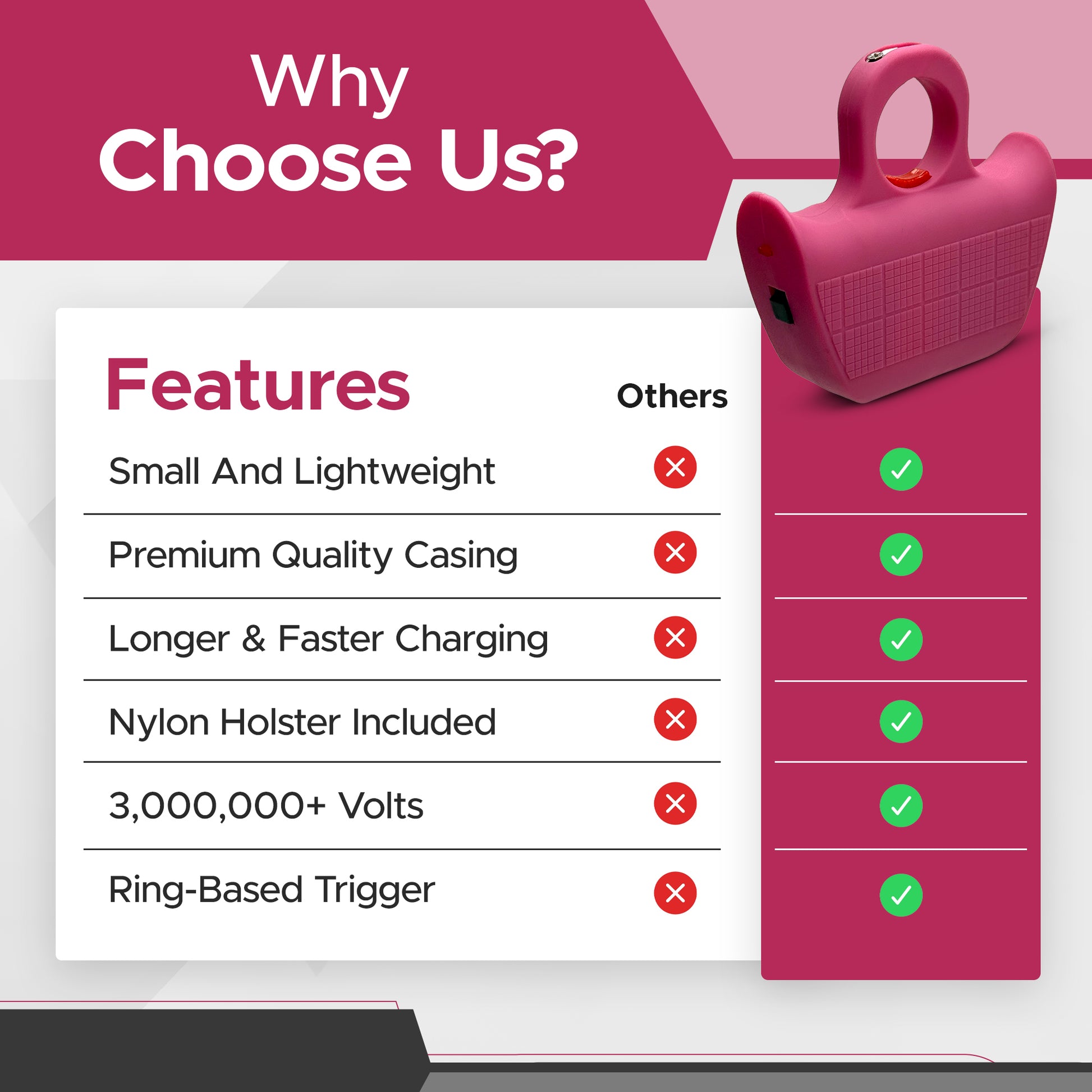 - Durable & Reliable: Made with high-quality materials, the Jogger Stun Gun V2 is built to last and withstand the rigors of regular use, ensuring long-term reliability in emergency situations.
